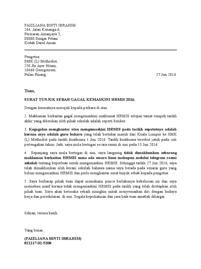 Surat Tunjuk Sebab Tak Kemaskini Hrmis Ma Pdf